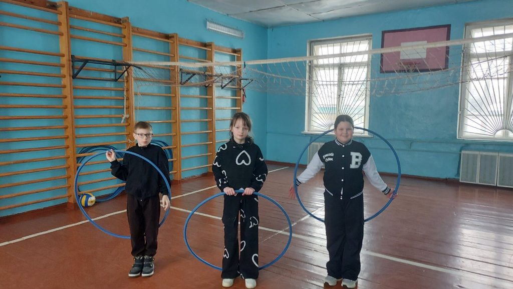 А в спортивном зале школы прошли веселые спортивные состязания с обручами и мячами. Дети с радостью соревновались друг с другом, демонстрируя свою ловкость и командный дух.