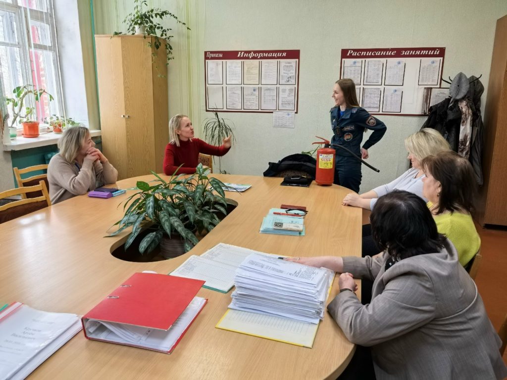 Внимание было уделено и трудовому коллективу школы. Ирина Вадимовна обратилась к сотрудникам с напоминанием о ключевых мерах безопасности, привела актуальные статистические данные по пожарам и чрезвычайным ситуациям, о необходимости установления АПИ в своих домах, а также призвала всех быть внимательными и строго соблюдать правила пожарной безопасности, заботиться о собственной безопасности и безопасности окружающих.