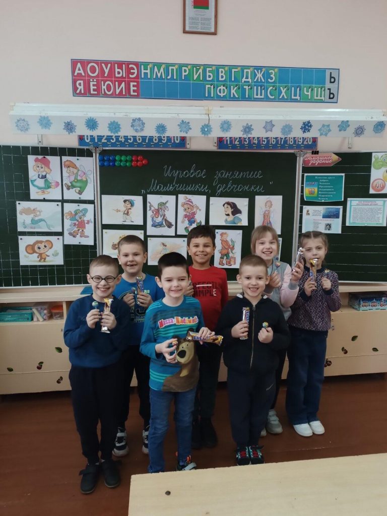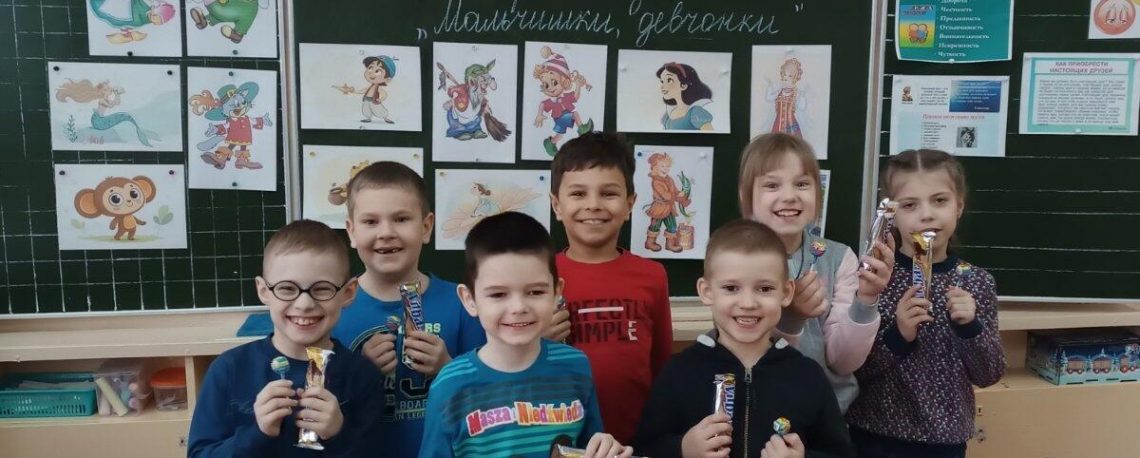 Для первоклассников учитель Хруцкая Татьяна Александровна провела игровое занятие «Девчонки, мальчишки». Мальчики поняли, что они сильные, и их роль — защищать девочек, матерей и своё Отечество!