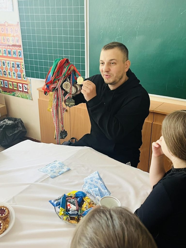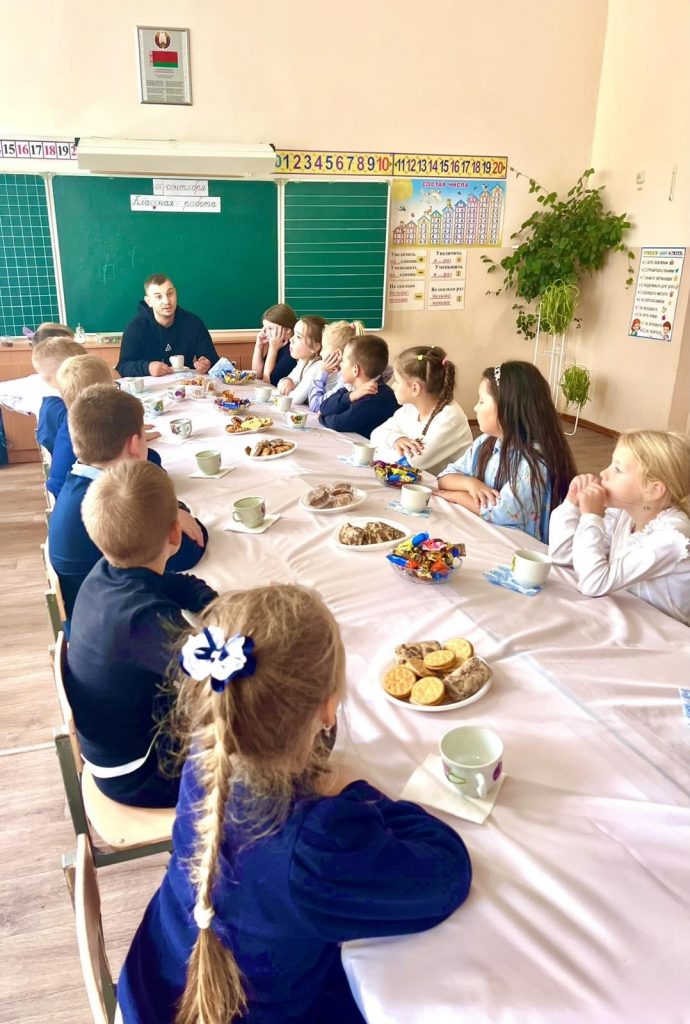 В рамках проекта комиссии по делам несовершеннолетних Жлобинского райисполкома «Будь успешным вместе с нами» 24 сентября в начальной школе №2 г. Жлобина прошла встреча за чашкой чая с тренером по боксу МОО «Лига спорта» Шиш Ярославом Игоревичем.